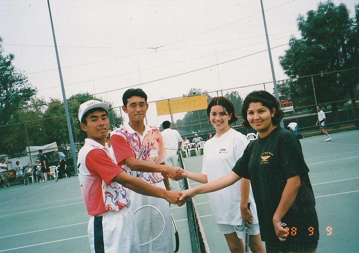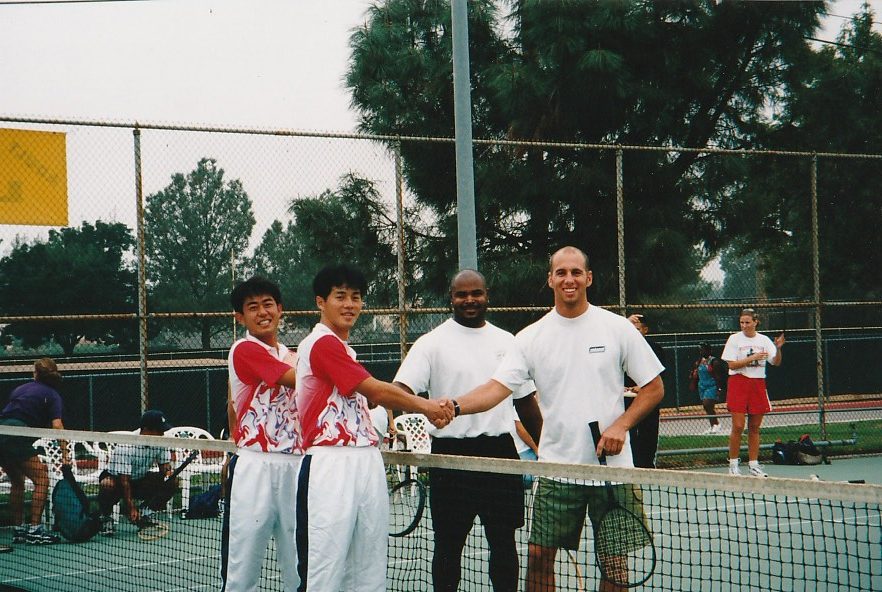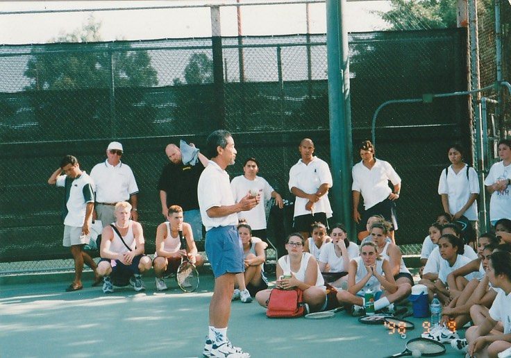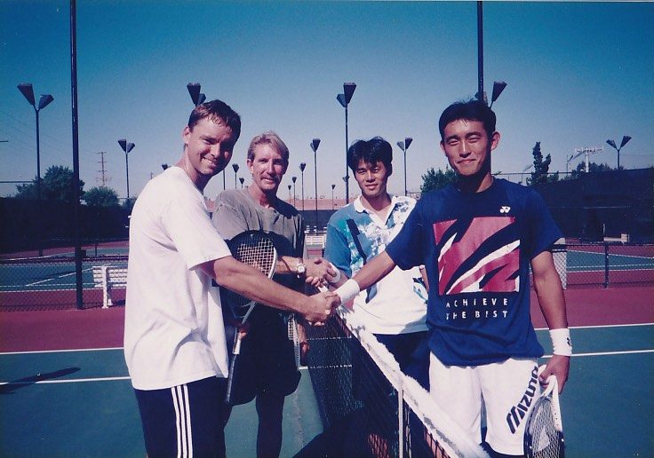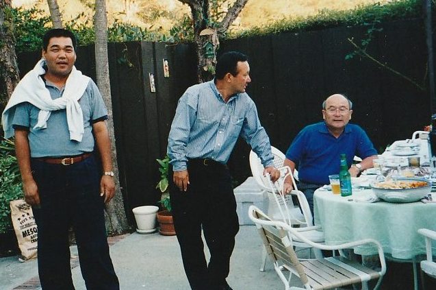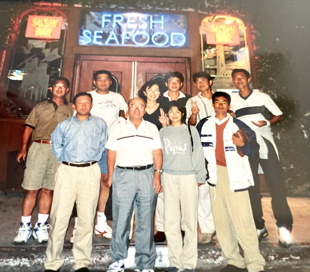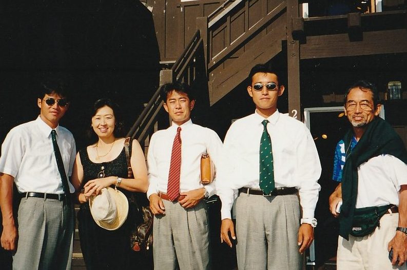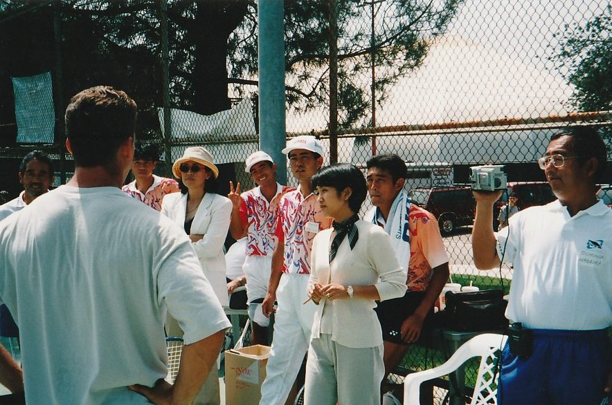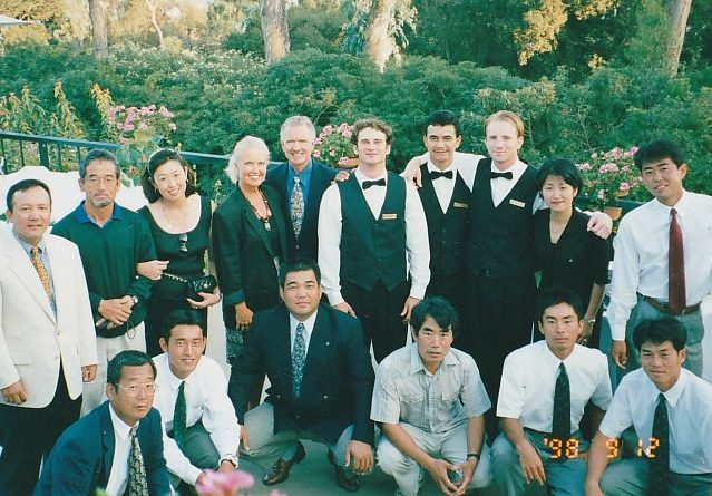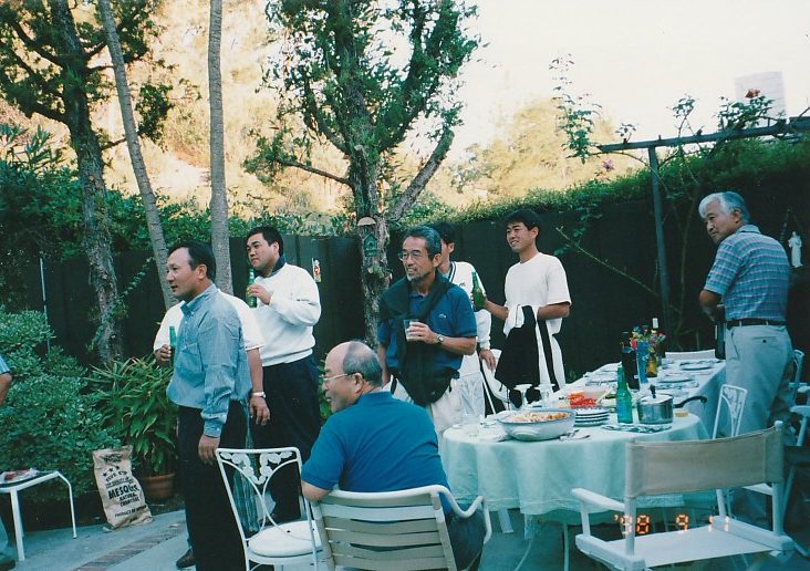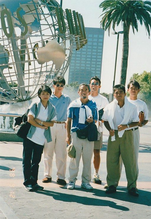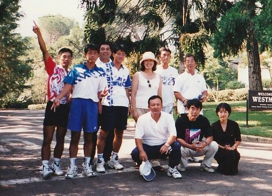 第3回 ロサンゼルス普及活動 1998年 9月8日〜9月14日 1日目 全員でサイプレスGCでゴルフ。 その後ローリーズプライムリブで食事。高川君だけダイヤモンドカットを注文。 2日目 ノースリッジテニスコートで8時から8コマをデモンストレーションするというかなりハードスケジュールだった。 その後、専務理事 林敏弘氏、宮崎氏共に「フィッシュカンパニー」で夕食、寿司海鮮、タラバなど食べまくる。その後サンタモニカプロムナード散策。 3日目ノースリッジでデモンストレーション。1時半に終わり、ビバリーヒルズ ロデオドライブ散策。6時に庄川進氏宅でバーベキューパーティー。庄川氏のお宅の庭にあるプールで、平山君、高川君、が飛び込み、順位を争った。思い出に残るパフォーマンスだった。 4日目サンタバーバラ、ウエストモントカレッジを訪問する。その後サンタバーバラピアの「エルエカント」で食事。デバインご夫妻が全員にプレゼントを用意してくださる。 5日目A最後の観光、高川君の希望でユニバーサルスタジオで皆、童心にかえる。夕方、ホールマーケットタラバ、ステーキ、ビールなど買い出し、お土産などを購入し、ホテルでご苦労様食事会。 |