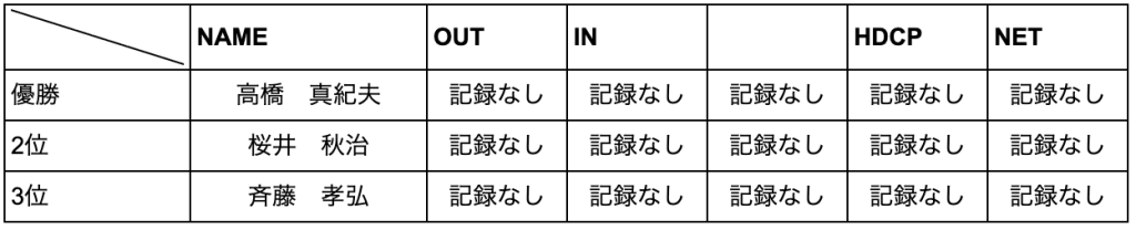 非常に風が強くスコアが全体的に乱れた。伊豆下田の出身、更には伊豆下田カントリークラブ近くの住人、 高橋真紀夫氏が初優勝。1升ビンにつめたはちみつをお土産にもってきてくれたのに、落として割ってしまい、残念だった。地元在住 中村 忠次は西田氏の日体大の後輩で陸上部あがり。パワーあります。優勝カップが連盟より提供される。会費三千円を徴収する。次回は3月中旬東京で開催する。