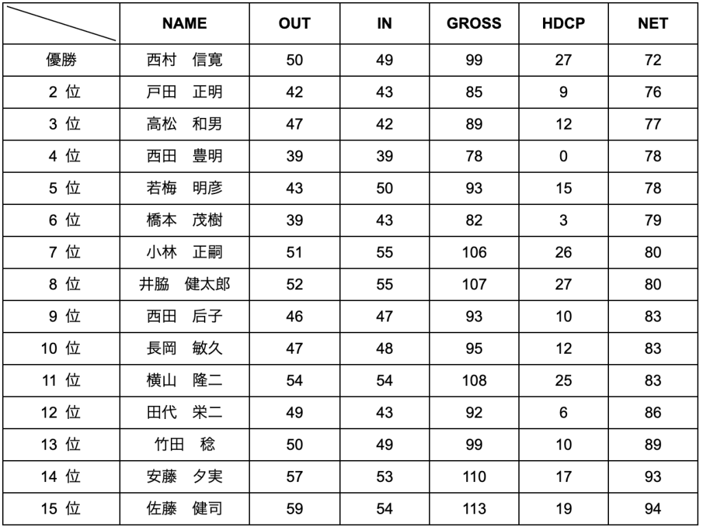 - B.G 西田 豊明 39 39 78