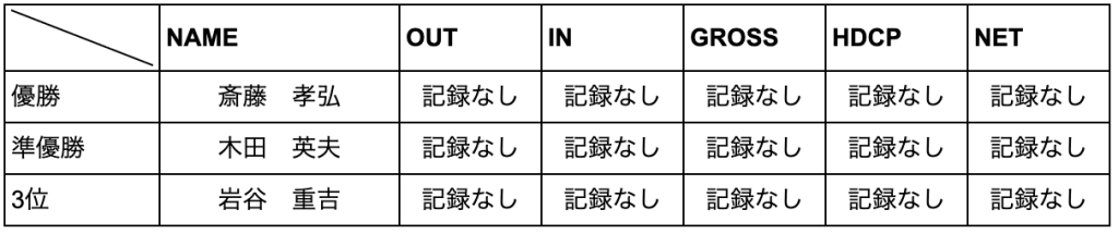 評 | 次回の開催は10回大会となり、記念大会とする。2月平塚インドア終了後集合し、下田へ向かう。記念大会なので各自二千円程度の賞品を持参する。自己申告の罰金は、アンダーを二百円から3百円とする。オーバーは100円とする。記念大会とするため、多くのメンバーに呼びかける。 |
