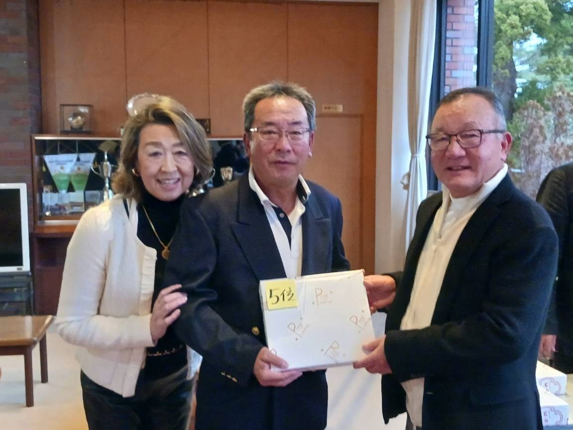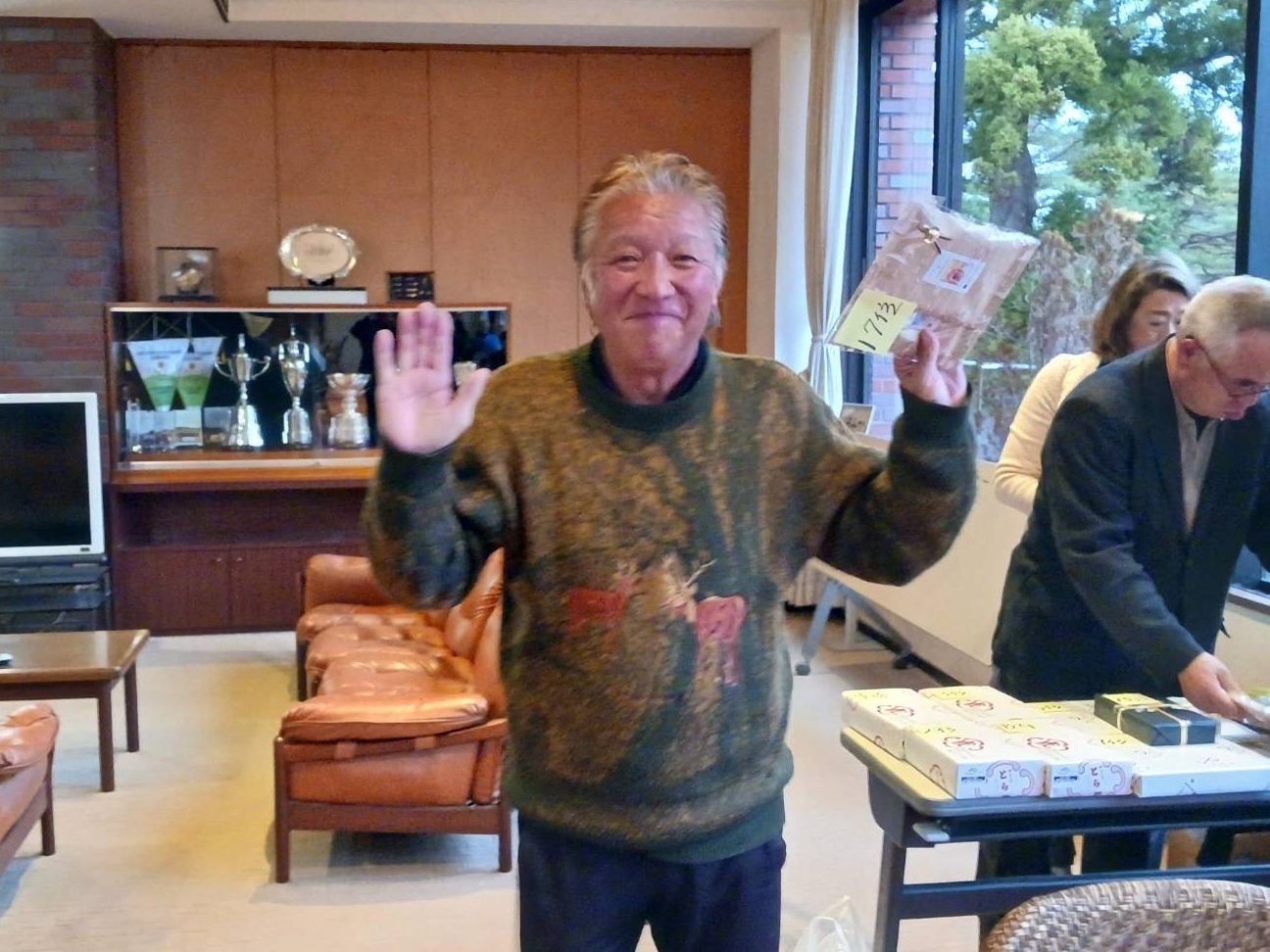 | 評 | 気温8度の中、参加者17名がインコースからスタートした。久しぶりの参加の堀越正博氏は群馬から朝4時に家を出たとのこと。本当にご苦労様です。最近STG会でブイブイいわせている浜田紫乃嬢の旦那様の浜田泰男氏と夫婦での初デビューとなったが、実は浜田泰男氏はその昔、1989年第21回STG会に参加しており、HDCP30、49 53 ネット72 のパープレーで優勝しておられました。なんと36年の時を超えての参加です。前回の第96回大会で初出場の為、鬼のルールにより2位に甘んじた小川正博氏が HDCP10で42 42 の84。ネット74の2オーバーで優勝を飾り、おまけにドラコン、ニアピンもかっさらった。HDCPは8に改正されたが、まだまだ荒稼ぎの気配濃厚です。次回お手柔らかにお願いしまーす。距離アップを目指し、年甲斐もなく無茶なスクワットをやり、左膝を痛めてしまい、びっこを引き引き臨んだ西田豊明氏は、かろうじて2位入賞、ベスグロを確保。痛くない!やればできる!まさに根性いぶし銀の背中を見せてくれた。 今回はお正月も間近ということで、とらやの羊羹最中の詰め合わせをご用意しました。入賞された方はご賞味ください。 |